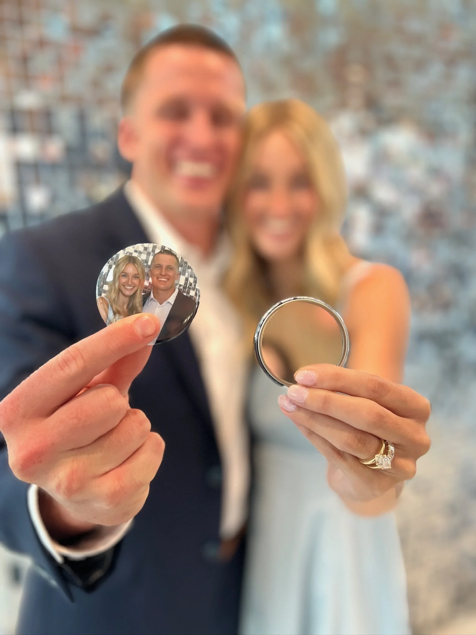 Photo Mirrors Custom photo Mirrors are perfect for an on-the-go keepsake! Buttons Custom photo buttons are perfect for your next outfit! Keychains The perfect custom on-the-go take-home from your next event. Magnets Custom 3-inch Photo Magnets, the cutest fridge decor! Dog Bowls Custom photo dog bowls are perfect for your pets! Viewfinders Custom Viewfinder keychains
